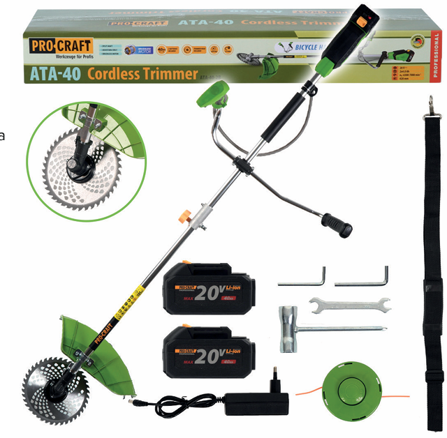 Aku krovinorez s obojručnou rukoväťou Procraft ATA-40C