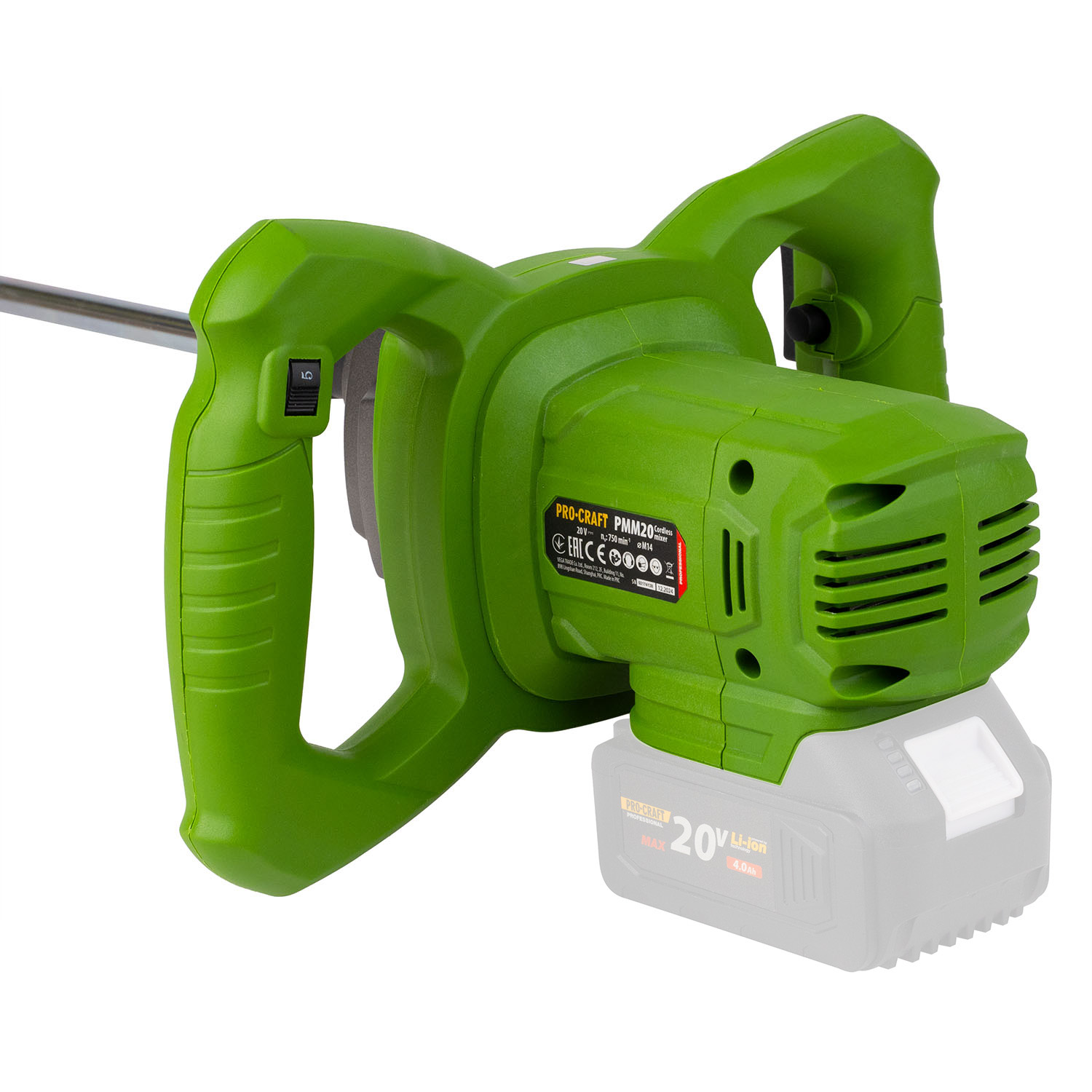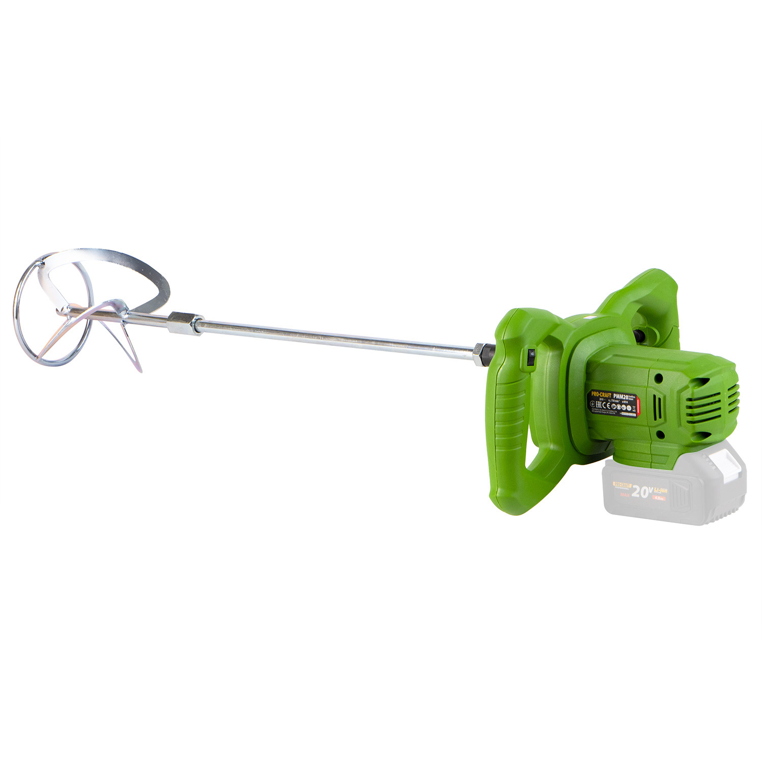 Aku miešadlo Procraft PMM20 je určené na miešanie betónu, malty, lepidla, omietky, sadry. Vysoké otáčky až 750 min⁻¹ zaručujú dlhodobú bezporuchovú prevádzku. Súčasťou balenia sú uhlíkové kefy, maticový kľúč a metla s priemerom 100 mm. Balenie sa dodáva bez batérie a nabíjačky, ktoré je potrebné zakúpiť samostatne.