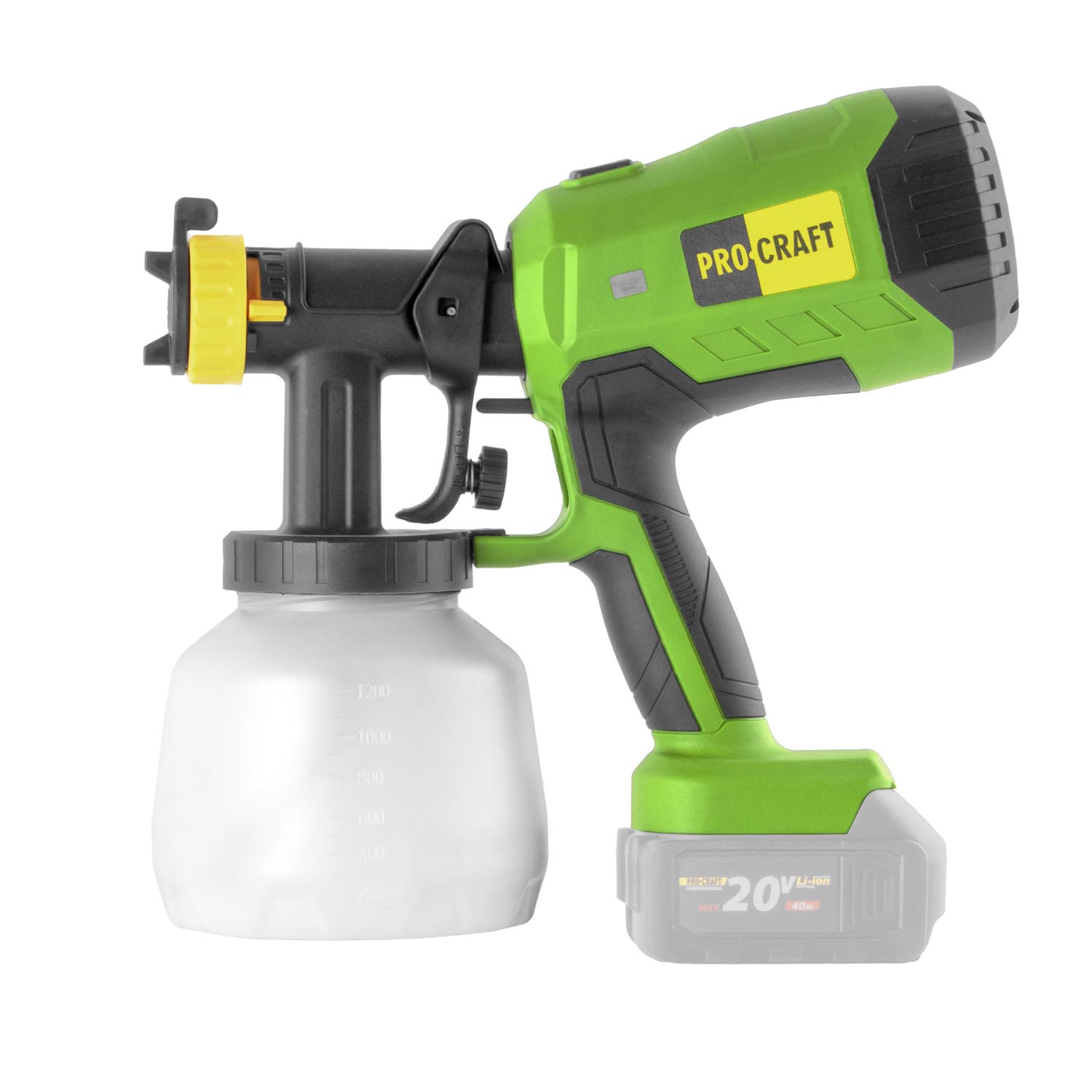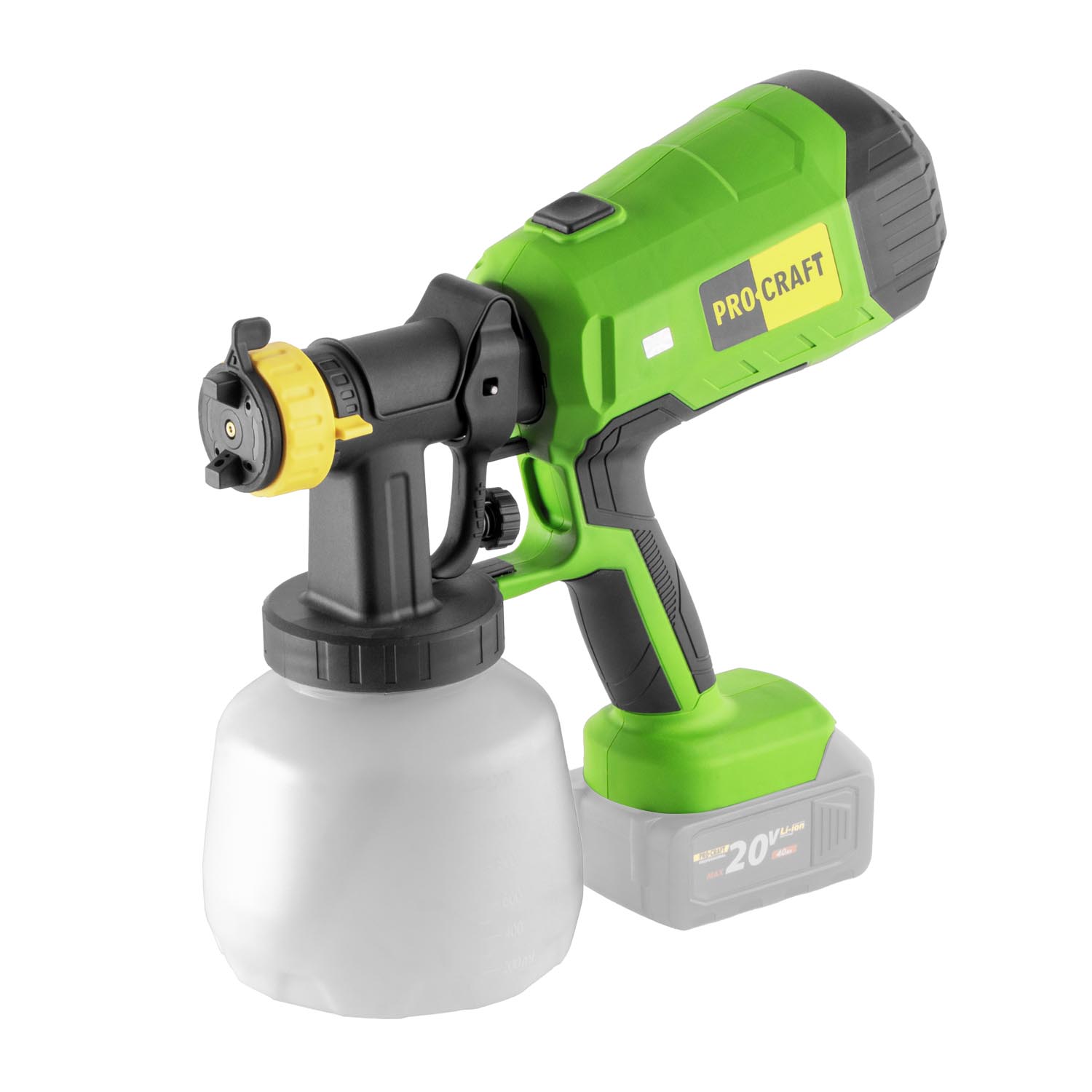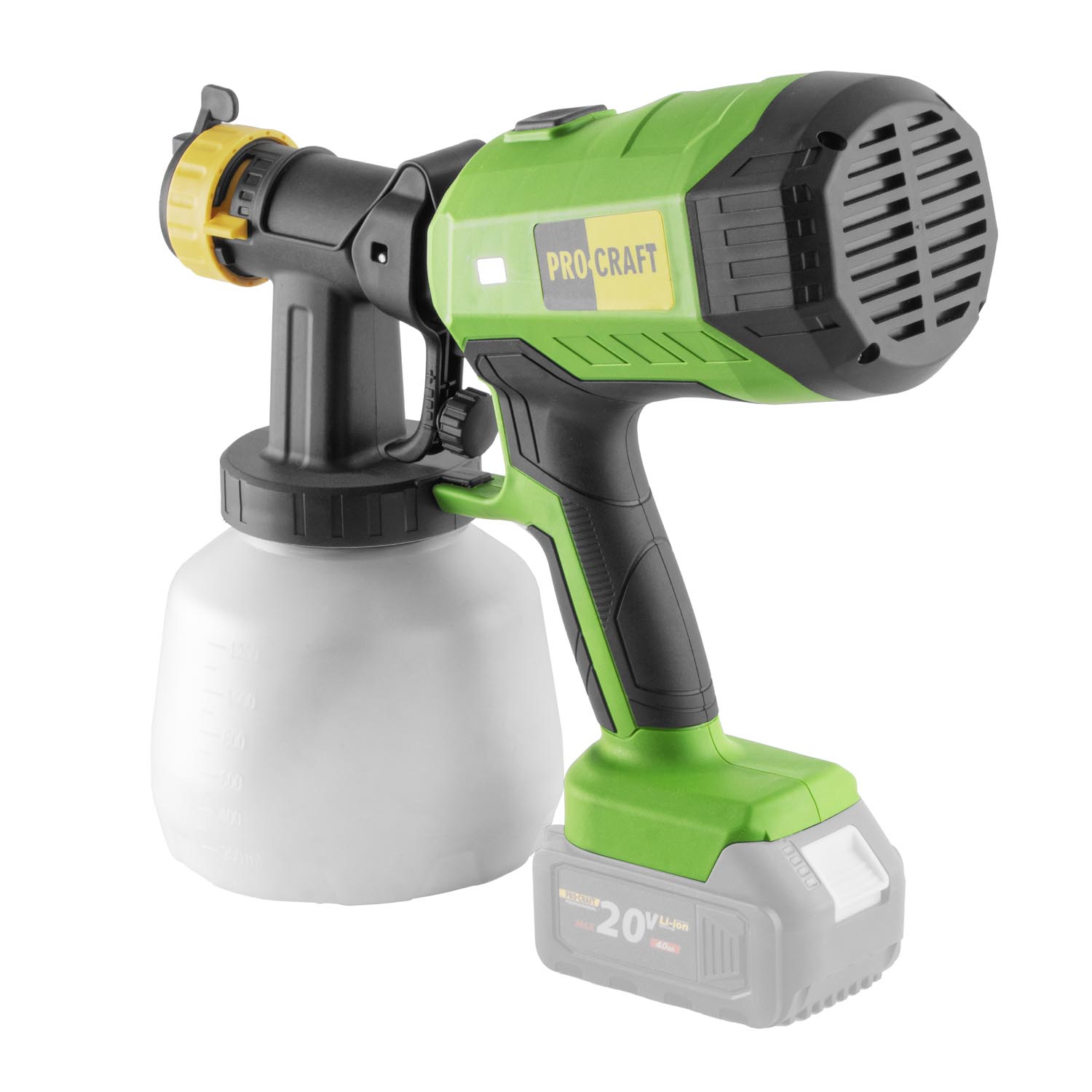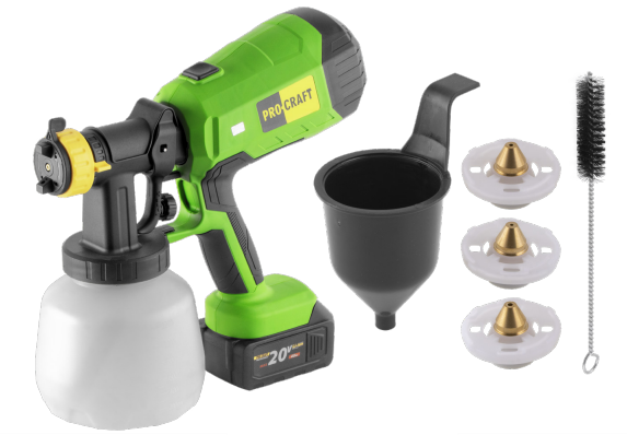 Aku striekacia pištoľ Procraft PSE40bb s nastaviteľnou šírkou postreku 100–300 mm, prietokom farby 750 ml/min, tryskami 2,0 a 2,5 mm. Ľahká konštrukcia (1,29 kg bez batérie) zabezpečí pohodlnú a precíznu prácu. Dodávané bez batérie a nabíjačky.
