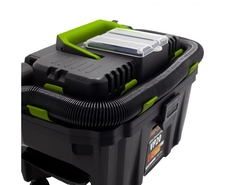 Vysávač AKU umožňuje mobilné vysávanie bez závislosti od elektrickej siete. Jeho mobilita je užitočná najmä pri drobných montážnych prácach – vŕtaní otvorov v stavebných konštrukciách v interiéri, čistení interiéru vozidla a iných drobných čistiacich činnostiach. Príslušenstvo pozostáva zo sacej hadice, úzkej štrbinovej hubice a širokej sacej hubice. Vysávač sa dodáva bez nabíjačky a batérie.