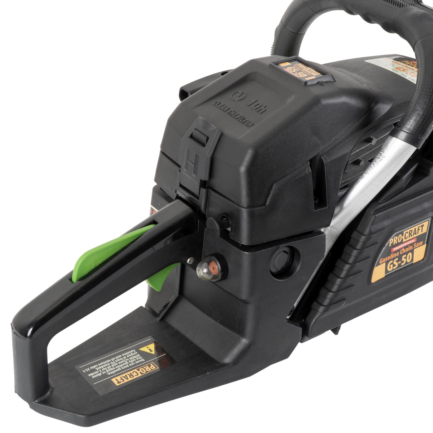 Benzínová reťazová píla Procraft GS-50 je určená na výrub stromov, spracovanie palivového dreva, prerezávanie veľkých konárov. Výkonný benzínový motor s príkonom 2100 W a vysokými otáčkami až 3300 ot/min zaručuje dlhú bezproblémovú prácu. Automatický systém mazania reťaze a kvalitná lišta zvyšujú spoľahlivosť stroja. Súčasťou dodávky je: miešacia misa, náradie, vodiaca lišta, reťaz s priemerom 64 článkov 0,325". kartónové balenie.