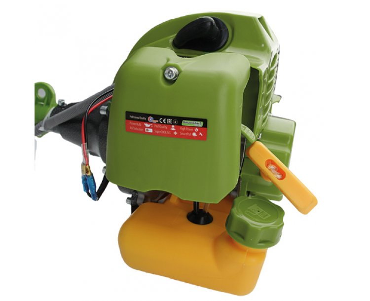 Vďaka kompletnému baleniu vrátane troch typov žacích hláv a popruhu je pripravený ihneď na použitie.