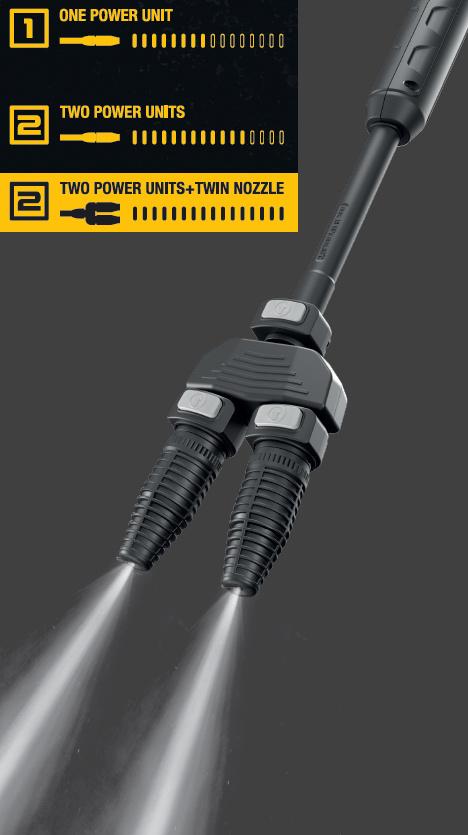 - Dve vysoko kvalitné motorové čerpadlá skonštruované tak, aby vydržali a fungovali spoľahlivo. Ponúkajú zvýšenie výkonu: dosah vodného lúča až 5 m s prietokom vody 850 l/h.