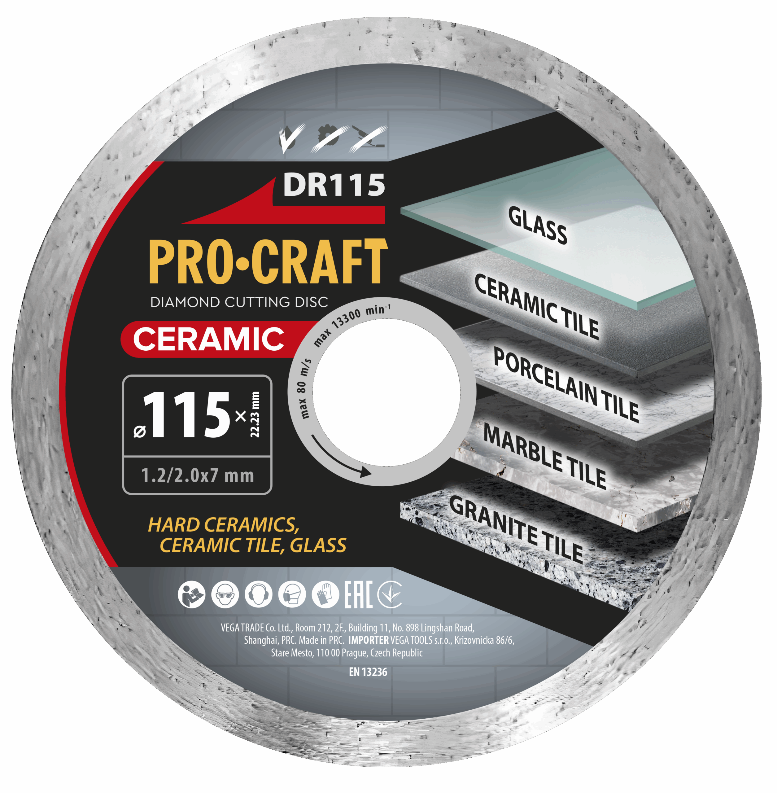 Diamantový řezný kotouč Ceramic Procraft DR115 je perfektní volbou pro každého, kdo hledá maximální přesnost, hladký řez a profesionální výsledky i při práci s těmi nejkřehčími materiály.