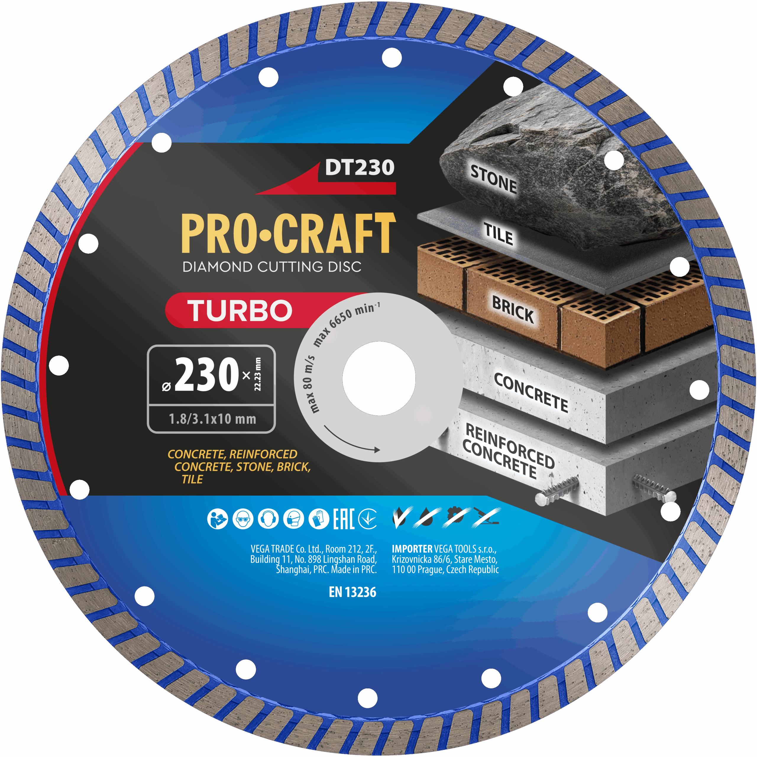 Diamantový rezný kotúč Procraft DT230 je univerzálny nástroj určený na tvrdé aj stredne tvrdé materiály, ktorý ponúka vysoký výkon, plynulé rezanie a dlhú životnosť. Vďaka lisovaným segmentom a ich pevnému spojeniu s telom kotúča je ideálny na menej aj stredne náročné rezné práce.