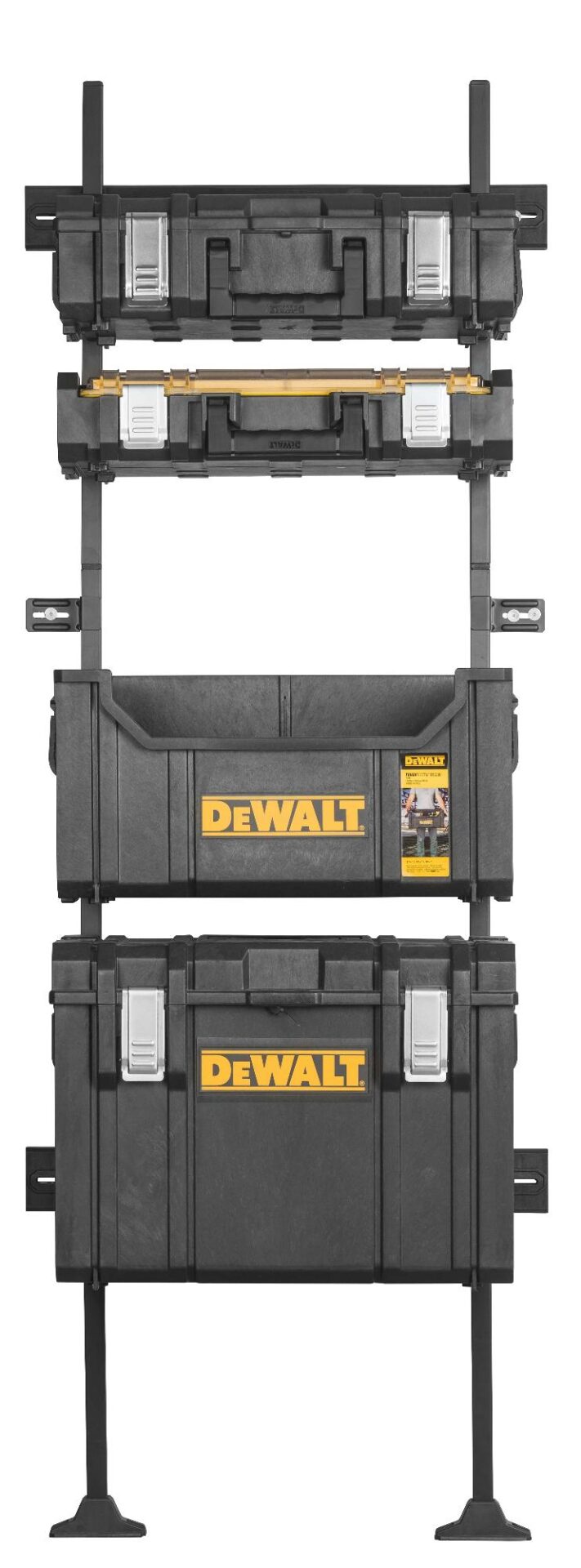 Úložný systém na múr na uloženie všetkých kufrov Tough Systém.Je možné prichytiť na stenu dielne alebo do vozidla, nosnosť jedného páru držiakov 30 kg, nosnosť celého stojana 200 kg.5 párov držiakov, nosnosť 40 kg/pár.Š × H × V: 650 × 329 × 1806 mm