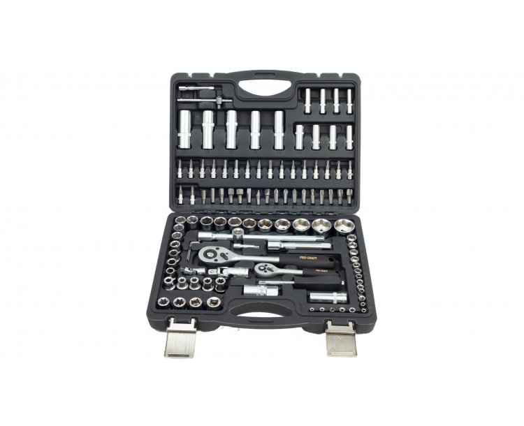 Súprava 108 dielov bránky Procraft WS-108 je určená na použitie v domácej dielni, ale aj pre mechanikov. Nástrčné hlavice a račne sú vyrobené z kvalitnej chróm-vanádiovej ocele (CRV), ktorá chráni pred koróziou, a tvrdý povrch vytvára odolnosť. Ráčny majú 48 zubov v račňovom prevode a sú vybavené pákou. Odolný plastový kufrík s kovovým uzáverom uľahčuje dlhodobé používanie a prenášanie. Prehľadne roztriedené nástroje uľahčujú a urýchľujú prácu. Súprava obsahuje račne, bity, nástrčné hlavice, šesťhranné kľúče, kľúče, univerzálne kĺby, predlžovacie nástavce a nástrčný skrutkovač. Súčasťou balenia je plastový kufrík.