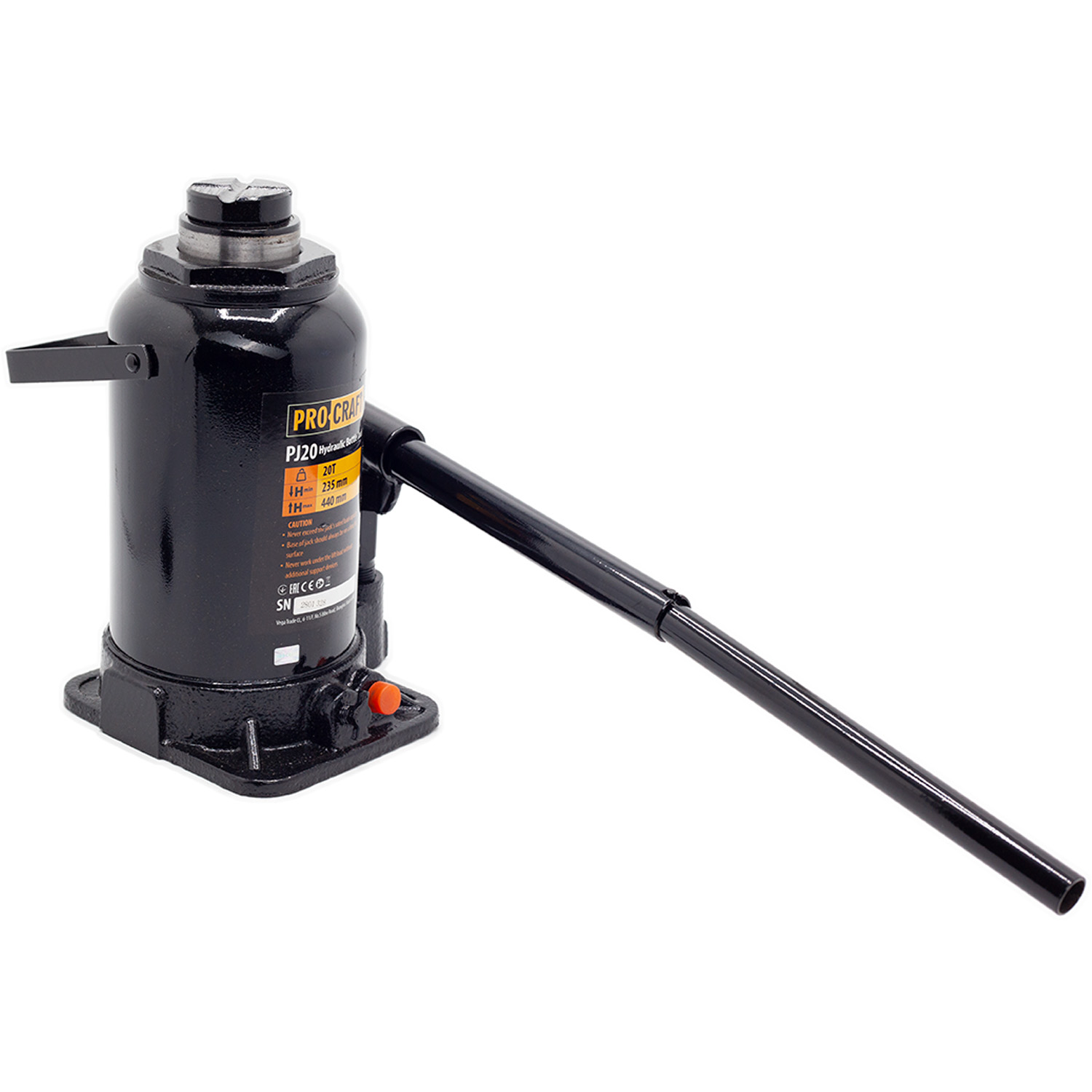 Hydraulický zdvihák Procraft PJ20 je určený na zdvíhanie automobilov, v stavebníctve a priemysle. Konštrukcia je vyrobená z kvalitnej liatiny, vybavená bezpečnostným ventilom. Zdvihák má nosnosť 20 ton a rozsah zdvihu od 235 mm do 440 mm a je vybavený skrutkovacou pätkou. Pohodlné zdvíhanie a plynulé spúšťanie bremien uľahčuje prácu. Tyč je súčasťou dodávky. Kartónové balenie.