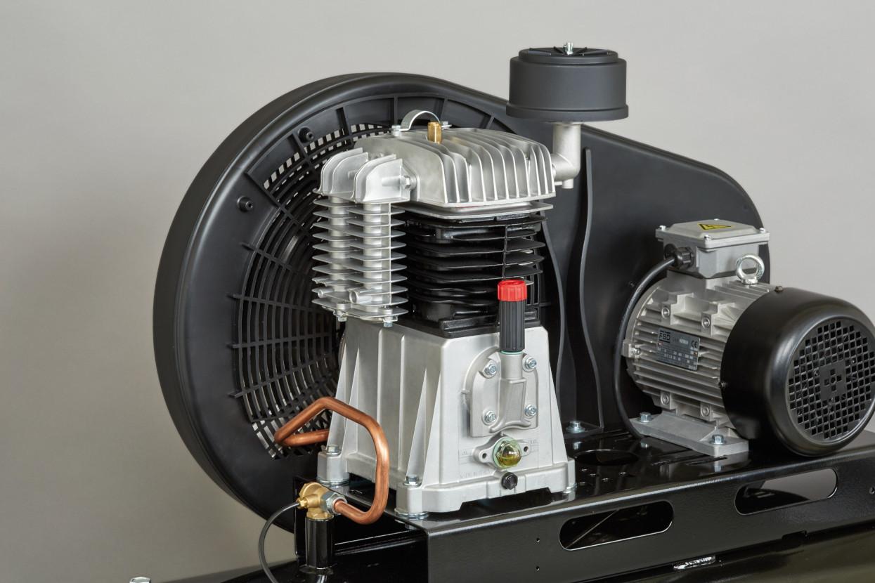• Dvojvalcový, dvojstupňový, remeňový, olejový kompresor vhodný pre vysoké zaťaženie.