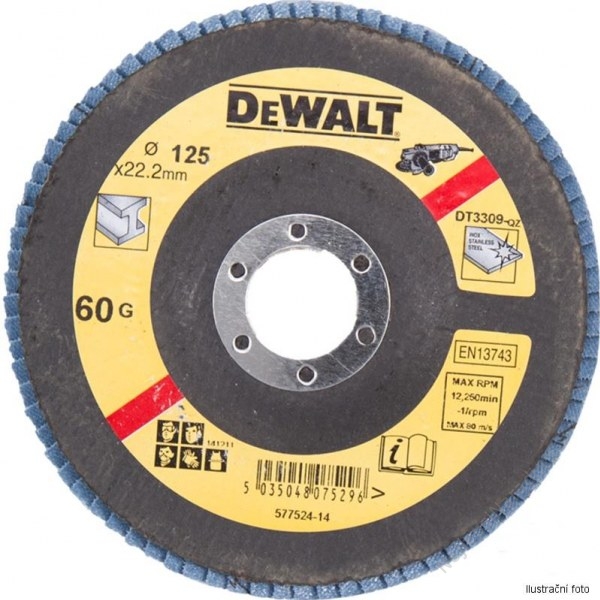 Kotúč brúsny lamelovací na kov 125×22,4mm P60 Typ27 plochý DEWALT DT3309