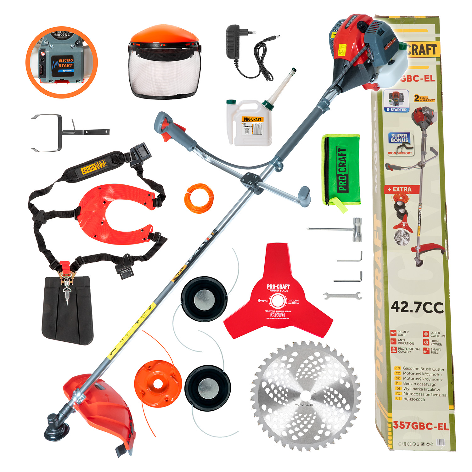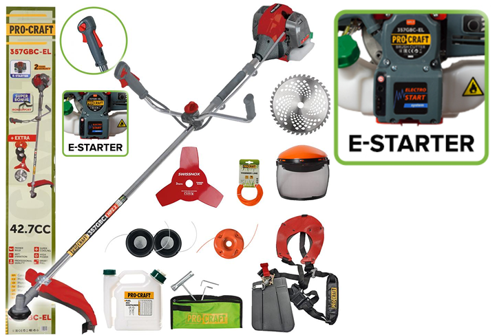 Procraft 357GBC-EL je skvelou voľbou pre každého, kto hľadá spoľahlivý, výkonný a jednoducho ovládateľný krovinorez s moderným elektroštartérom.