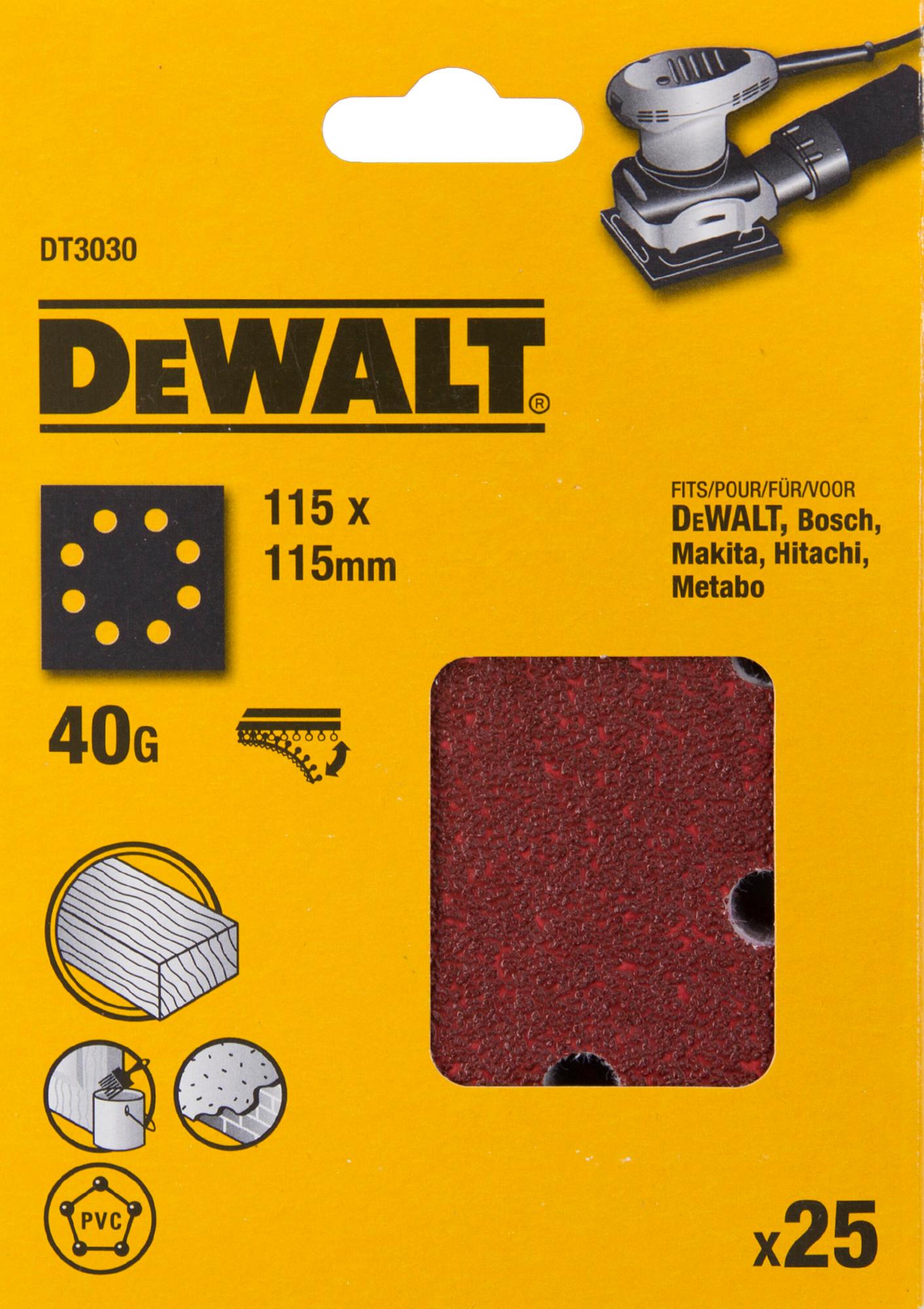 Papier brúsny 115x115mm P40 dierovaný suchý zips 25ks D26441/DWE6411 DEWALT DT3030