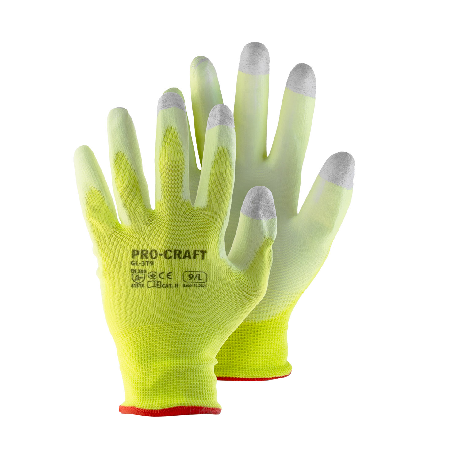 Pracovné rukavice Procraft GL-3T8 sú ľahké a flexibilné rukavice určené na presnú prácu s možnosťou ovládania dotykových zariadení. Vďaka PU povlaku na dlani poskytujú dobrý úchop a citlivosť, zatiaľ čo integrovaná dotyková funkcia na prstoch umožňuje prácu s telefónom či tabletom bez nutnosti rukavice dávať dole.