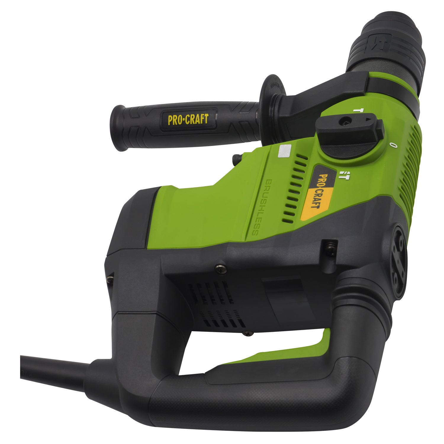 Bezkartáčové kombinované kladivo Procraft BH2100N je určené na prácu so stavebnými materiálmi, ako sú tehly, betón alebo kameň. Tri prepínateľné funkcie umožňujú všestranné použitie kladiva: vŕtanie, vŕtanie s príklepom, funkcia sekania. Regulácia otáčok a príklepu umožňuje nastaviť optimálne parametre pri práci s rôznymi materiálmi. Keďže kladivo má rukoväť v tvare písmena "D", chráni ruku pred poranením a zabezpečuje pohodlné držanie. Ako príslušenstvo možno použiť príklepové vrtáky SDS Plus do betónu, ploché – špicaté alebo tvarované sekáče do stavebných materiálov, hadovité (špicaté) vrtáky a sekáče do dreva. Súčasťou balenia sú ploché a špicaté sekáče, tri vrtáky a kufrík na prenášanie. Kartónové balenie.