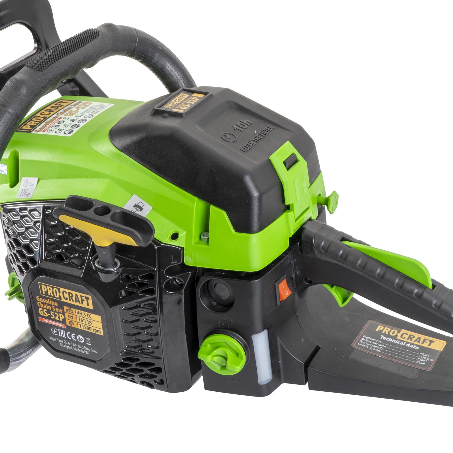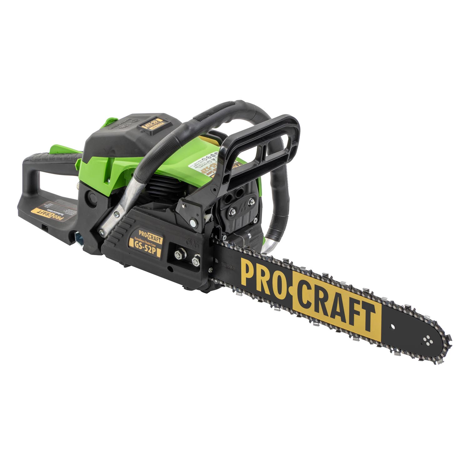 Benzínová reťazová píla Procraft GS-52P je určená na výrub stromov, spracovanie palivového dreva, prerezávanie veľkých konárov. Výkonný benzínový motor s príkonom 2100 W a vysokými otáčkami až 11500 ot/min zaručuje dlhú bezproblémovú prácu. Automatický systém mazania reťaze a kvalitná lišta zvyšujú spoľahlivosť stroja. Kartónové balenie.
