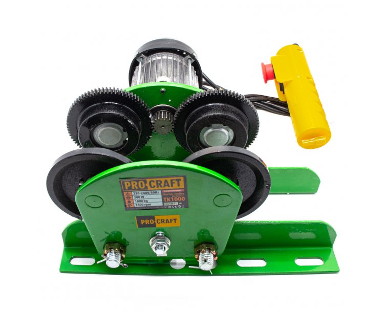 Elektrický pojazdný vozík Procraft TK1000 je určený na horizontálny pohyb lanových navijakov alebo kladkostrojov s bremenami. Ergonomický káblový ovládač uľahčuje a urýchľuje prácu. Vysokú nosnosť až 1200 kg umožňuje výkonný indukčný motor a robustná oceľová konštrukcia. Núdzový spínač na ovládači a tepelná ochrana motora zaručujú dlhú životnosť a bezpečnosť pri práci. Kartónové balenie.