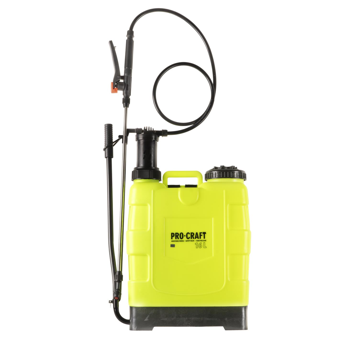 Procraft HS-16 ručný postrekovačObjem nádrže 16 l. Kovová striekacia trubica. Postrekovač je vyrobený z vysoko kvalitných materiálov, ktoré nepraskajú pod tlakom. Je vybavený gumovým tesnením, ktoré je odolnejšie ako štandardné silikónové tesnenie. Súčasťou balenia sú náhradné vymeniteľné trysky, praktický chrbtový popruh, tesniace krúžky a pohodlná spúšť pištole. Nádoba postrekovača je priesvitná, takže pri práci vidíte objem kvapaliny.