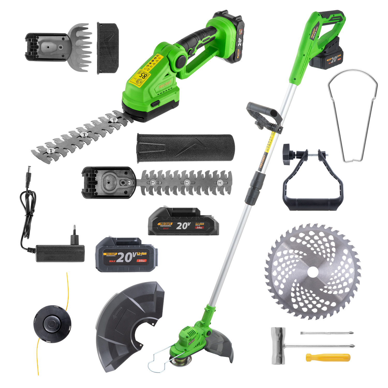 Praktická záhradná sada Procraft PTA24-BL + PGH2100 ponúka ideálnu kombináciu na kompletnú údržbu zelene. Výkonný aku vyžínač zabezpečí rýchle kosenie trávy, zatiaľ čo kompaktné nožnice umožnia presnú úpravu okrajov a tvarovanie kríkov. Vyžínač s bezuhlíkovým motorom ponúka pracovný záber 380 mm, otáčky 5000/min a nízku hmotnosť pre pohodlnú prácu. Teleskopická rukoväť a otočná hlava uľahčujú prácu aj na ťažšie dostupných miestach. Aku nožnice s nadstavcami na trávu a kríky a otočnou rukoväťou umožňujú presné strihanie v rôznych uhloch a vďaka nízkej hmotnosti zabezpečujú komfort aj pri dlhšom používaní.