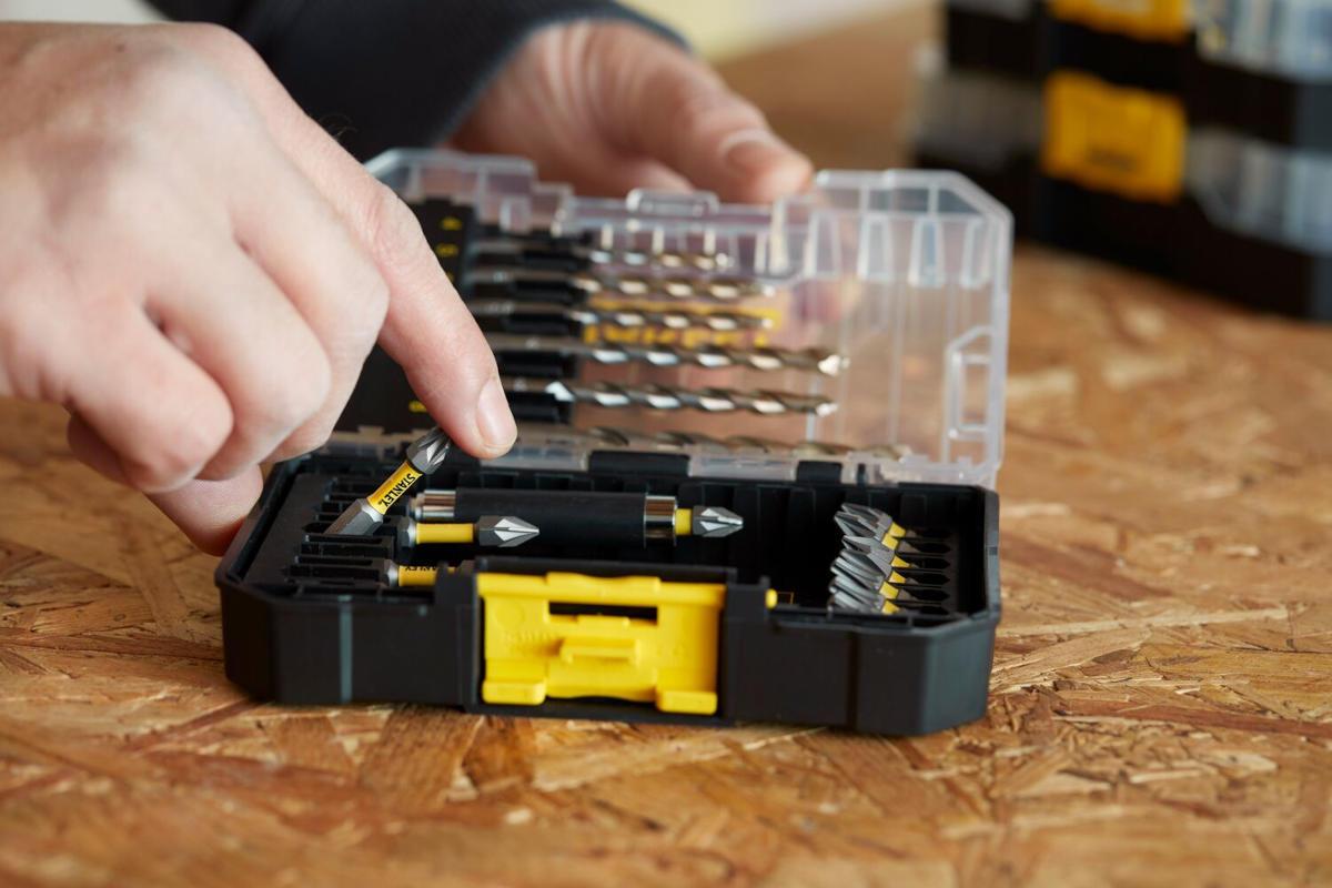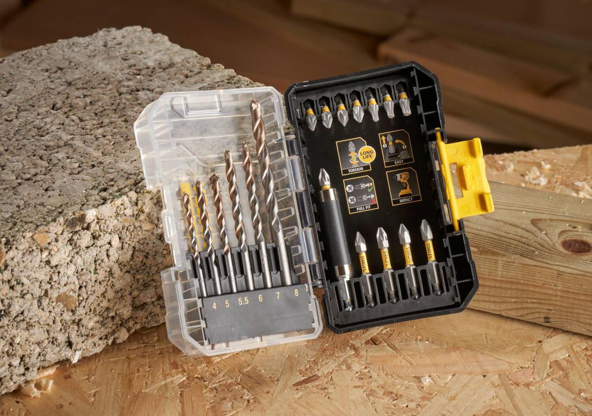 • Súpravy vrtákov a bitov na vŕtanie a skrutkovanie do rôznych materiálov.