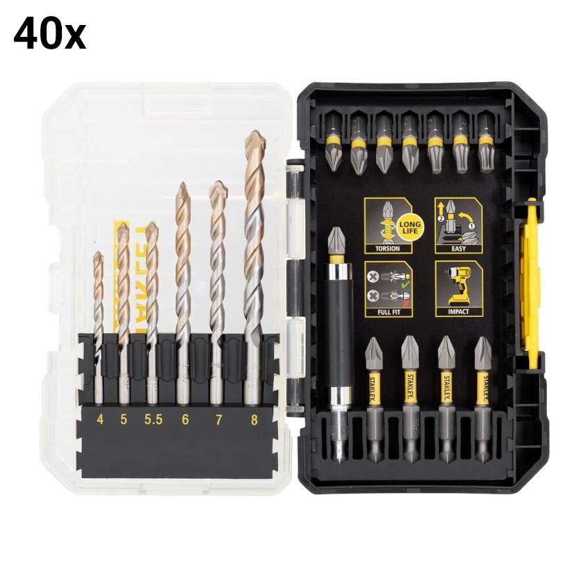 • Balenie obsahuje 40 súprav STA88552 (19 dielna súprava vrtákov a bitov).