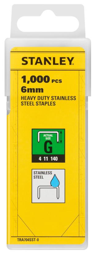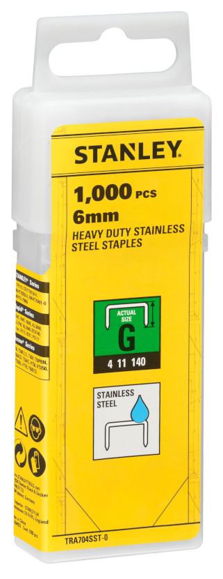 Spony nerezové 6mm (1/4″) typ G 4/11/140 1000ks STANLEY TRA704SST-0