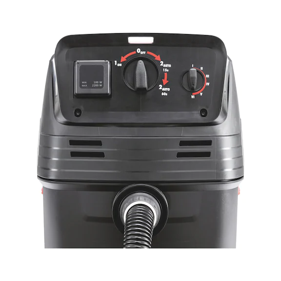 Zásuvka s Hallovým snímačom na automatickú detekciu elektrického náradia umožňuje ovládať vysávač pomocou pripojeného elektrického náradia.