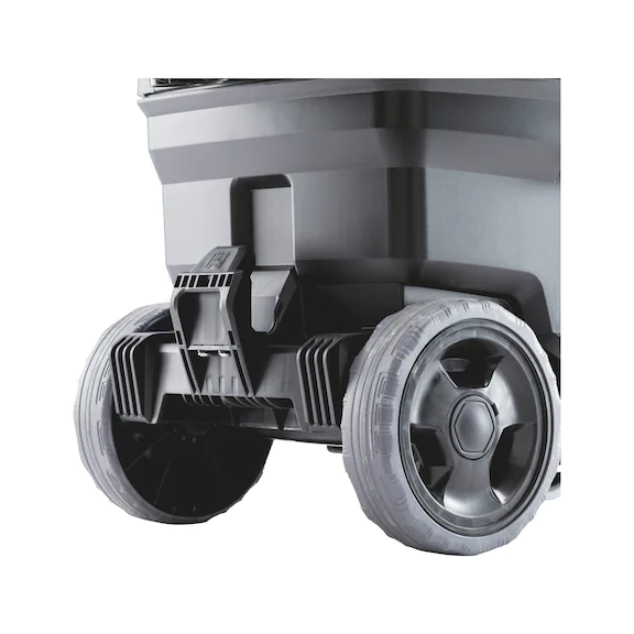Robustná nádoba s nárazníkmi a veľkými masívnymi kovovými kolieskami