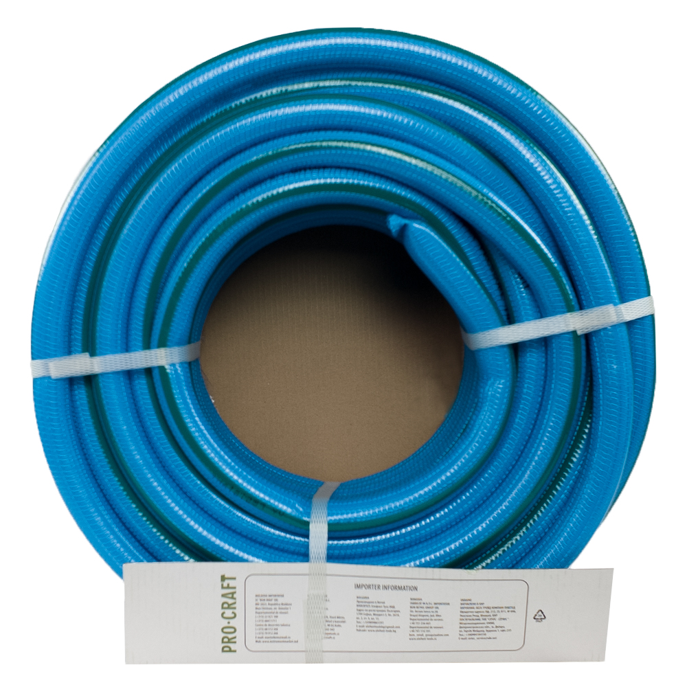Záhradná hadica Procraft je určená na zavlažovanie a polievanie záhrad, pozemkov. Vystužená trojvrstvová záhradná hadica s tkanou výstužou má dlhú životnosť až 8 rokov. Kvalitné spracovanie hadice zaručuje vysokú odolnosť voči UV žiareniu, poveternostným vplyvom a teplotám (-10 až +65). Hadica je veľmi pružná, pevná a odolná voči poškodeniu.