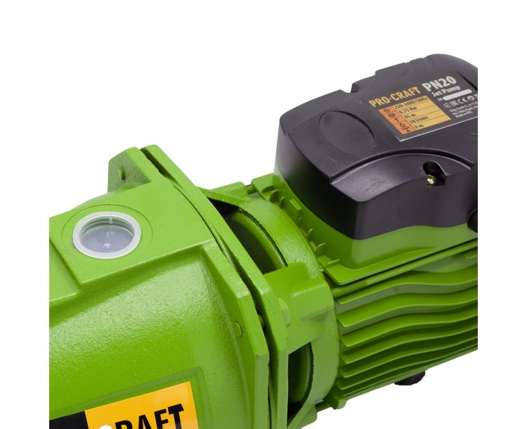 Tlakové čerpadlo Procraft PN20 Backyard je určené na čerpanie čistej vody z nádrže, jazierka, rybníka, studne. Výkonný motor s príkonom 750 W zaručuje výkon 3 000 litrov za minútu z hĺbky až 9 m do výšky až 45 m. Tepelná ochrana motora zaručuje dlhú životnosť a bezpečnosť pri práci. Odolné liatinové telo zvyšuje životnosť. Povrchová úprava zabraňuje korózii. K čerpadlu je potrebné pripojiť saciu hadicu (s drôtom) so sacím košom. Pred spustením je potrebné obežné koleso zaliať cez nalievací otvor pod skrutkou v telese čerpadla. Ideálne použitie je s tlakovým spínačom, ale za vhodných podmienok sa môže používať aj bez neho. Nenechávajte čerpadlo v chode bez vody. Balenie v kartóne.
